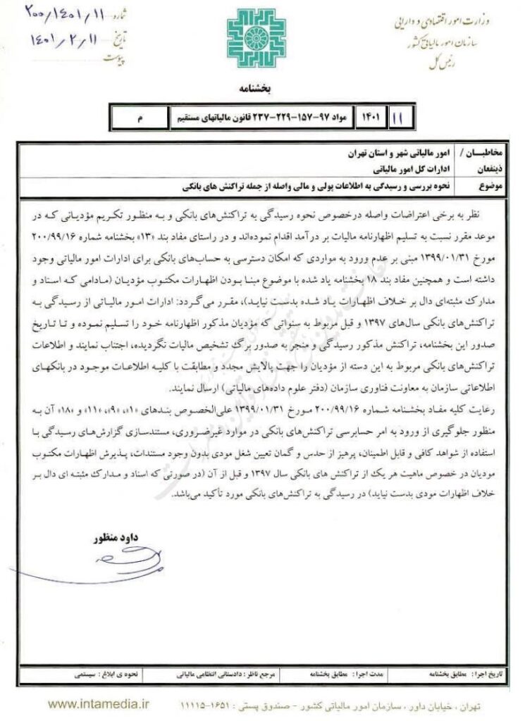 نحوه بررسی و رسیدگی به اطلاعات پولی و مالی واصله از جمله تراکنشهای بانکی