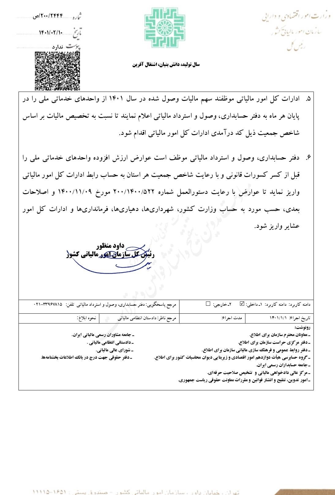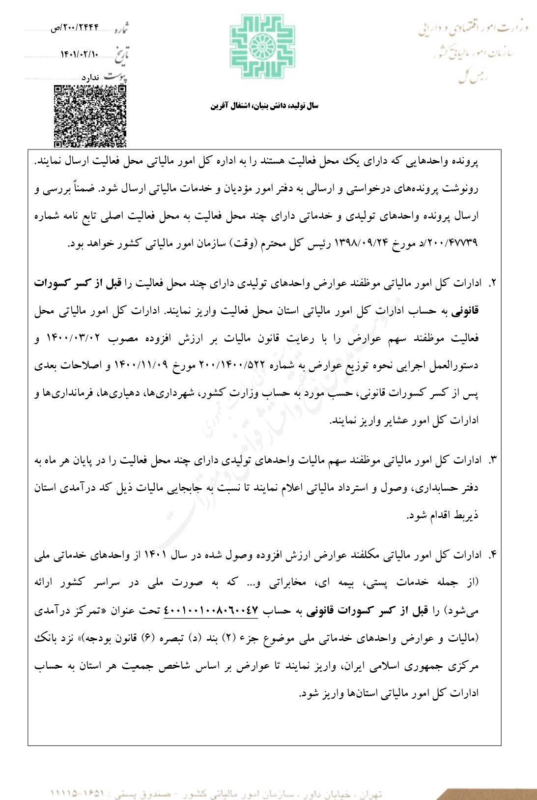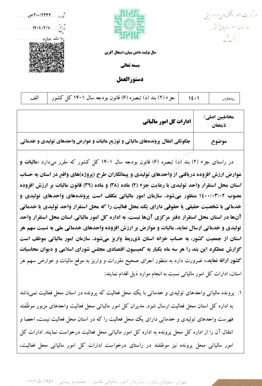 چگونگی انتقال پرونده های مالیاتی و توزیع مالیات و عوارض واحدهای تولیدی و خدماتی